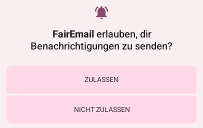 Die obere Frage sollte mit Zulassen bestätigt werden. Andernfalls hat FairMail keinen Zugriff auf die Kontakte!