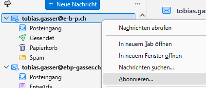 Deshalb mit der rechten Maustaste auf das neue Konto klicken und dann mit der linken auf Abonnieren....